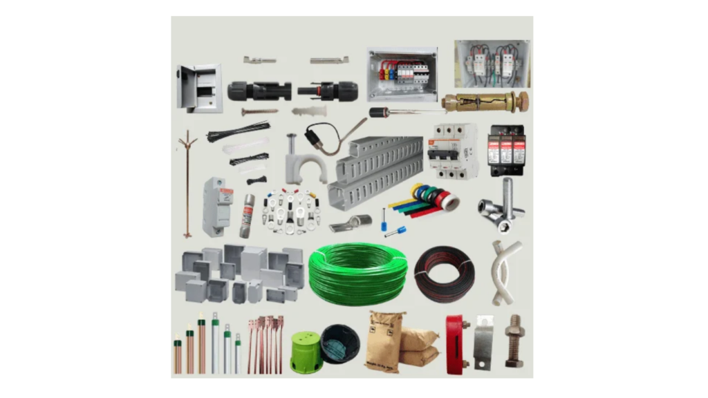 BOS Materials– Gi Structure, DCDB, LA, Earthing, DC Wire, Connector, AC Wire, ACDB.
